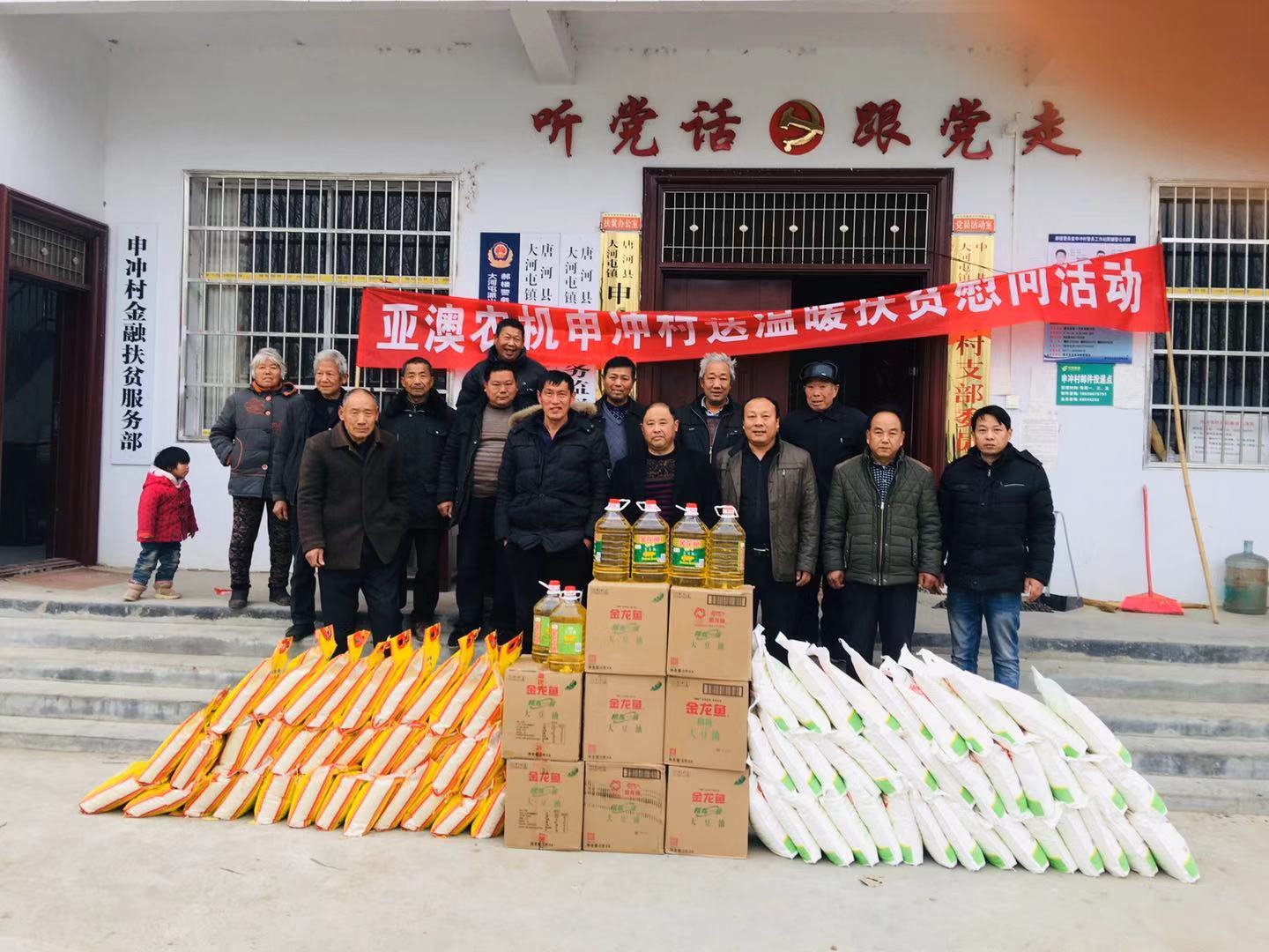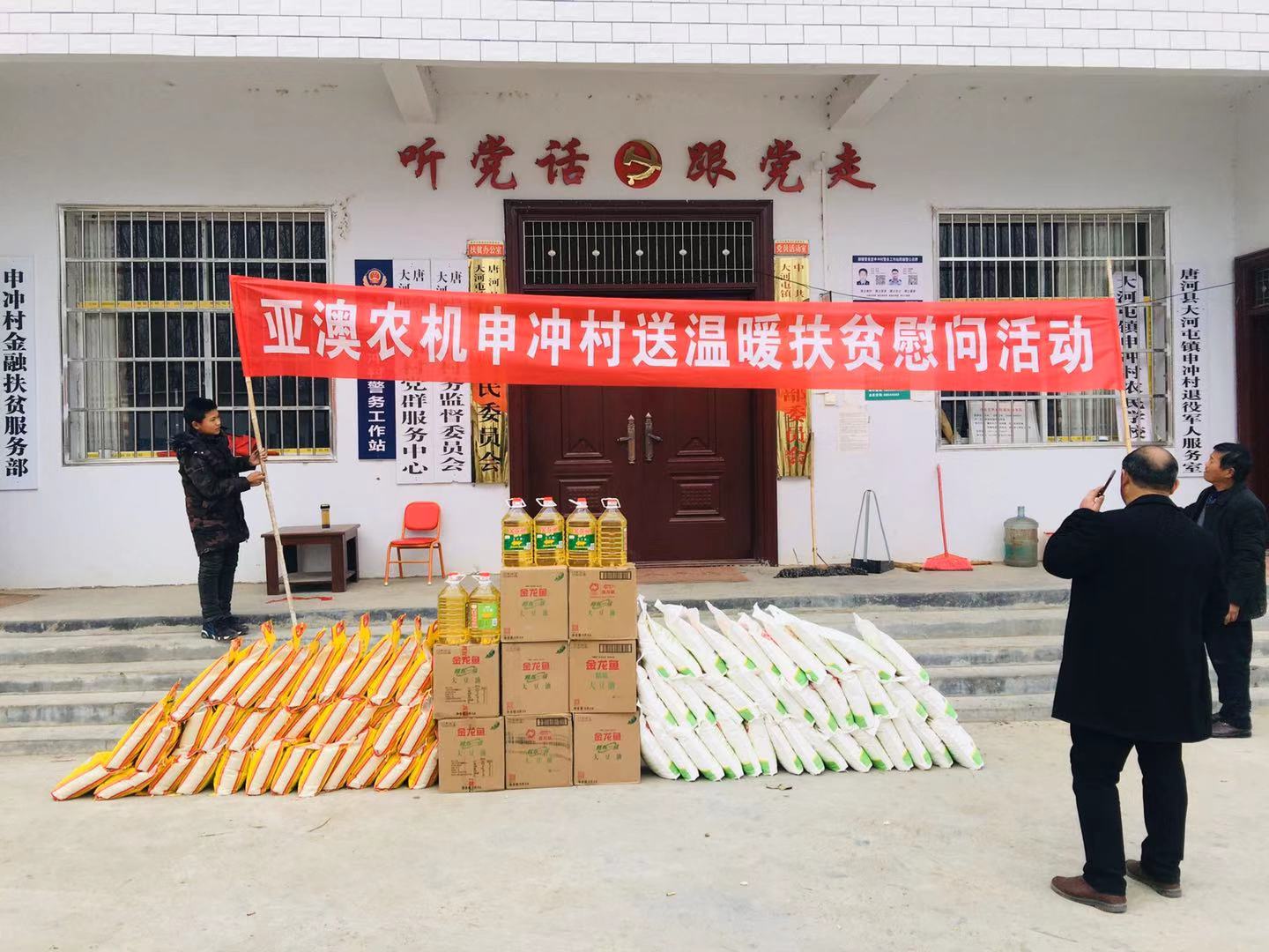 為積極貫徹落實唐河縣委縣政府”百企幫百村”的扶貧工作精神,履行企業(yè)社會責任,按照縣扶貧辦工作統(tǒng)一部署,亞澳農(nóng)機結(jié)合對口幫扶的申沖村實際情況,因地制宜,統(tǒng)籌規(guī)劃,務求實效,在2018-2019年開展了一系列的扶貧幫困工作。