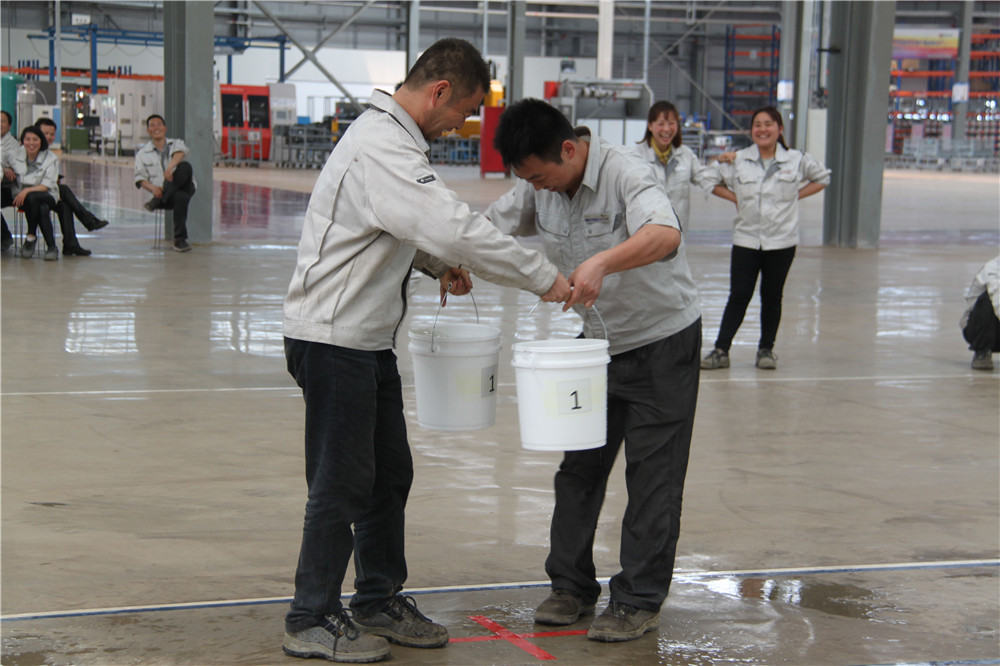 下午13:30在運(yùn)動(dòng)場(chǎng)出現(xiàn)了擺放有序的水桶,這是我們的第二項(xiàng)活動(dòng):精益運(yùn)輸大接力,取水點(diǎn)的距離分別大于等于10米,每個(gè)桶分別裝滿(mǎn)10L水,每組隊(duì)員是五個(gè)人,要在120秒內(nèi)完成大桶水量的收集,超過(guò)120秒的隊(duì)員淘汰出局,在規(guī)定的時(shí)間內(nèi),水量收集多者獲勝,抽簽決定出場(chǎng)順序,這項(xiàng)活動(dòng)是讓員工明白精益化生產(chǎn)體系的精髓所在之處;減少過(guò)程浪費(fèi),實(shí)現(xiàn)低成本的快速交付,滿(mǎn)足客戶(hù)的同時(shí),做到細(xì)節(jié)控制,提升產(chǎn)品使用價(jià)值,提升公司盈利空間。比賽開(kāi)始了只見(jiàn)隊(duì)員雙手提起20L的水往下一站的隊(duì)友那里送,中間會(huì)有灑水會(huì)很累,但是每個(gè)人都為了自己隊(duì)伍的榮譽(yù)拼盡全力向終點(diǎn)奔去,旁邊的隊(duì)友為他們加油、吶喊,最終自焊獲得第一名。