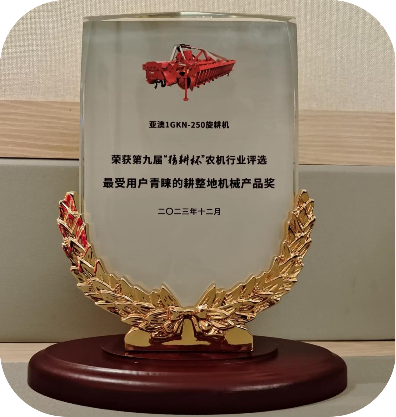 亞澳1GKN-250旋耕機(jī)榮獲最受用戶青睞的耕整地機(jī)械產(chǎn)品獎